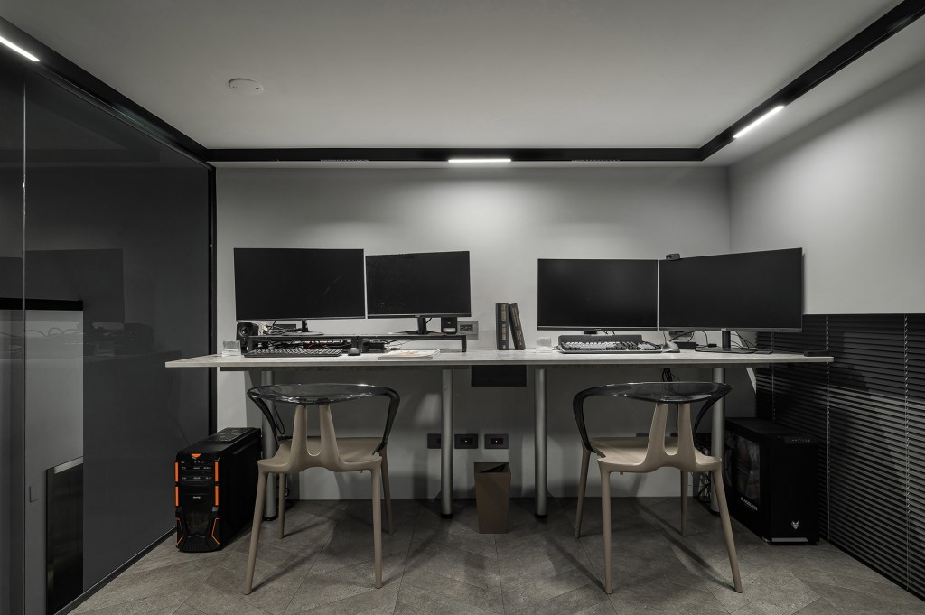 在冷靜的灰階中,我們以材質的對比、結構的留白,
